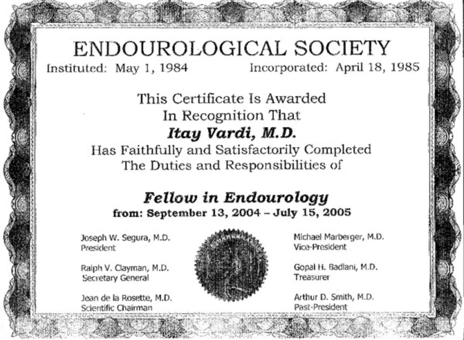 - 2004-2005 עמית קליני באנדואורולוגיה, מלגה קלינית רשמית של האגודה האנדו-אורולוגית בית הספר לרפואה של אוניברסיטת נורת'ווסטרן שיקגו, אילינוי